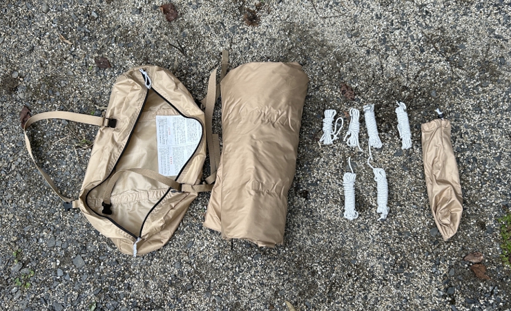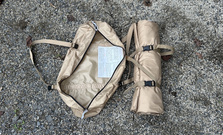 収納バッグを開けると中から出てきたのは丸まったタープだけ。