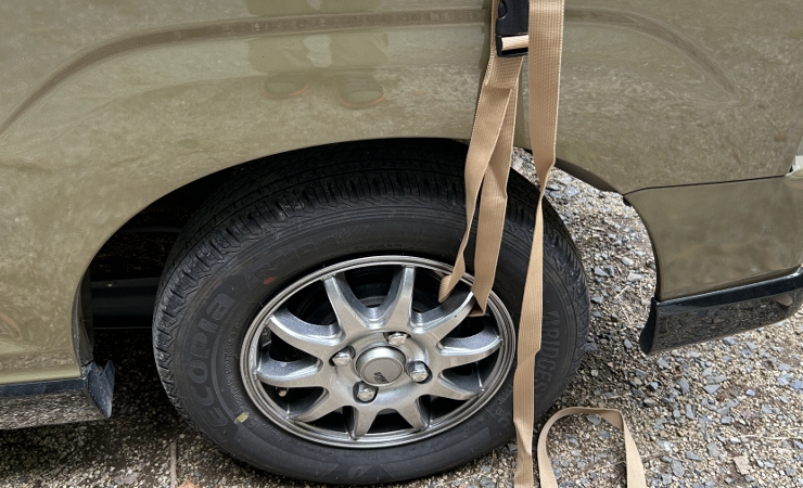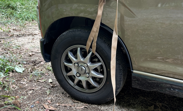 一番時間がかかったのはタープを車の屋根に乗せる作業でした(笑)。