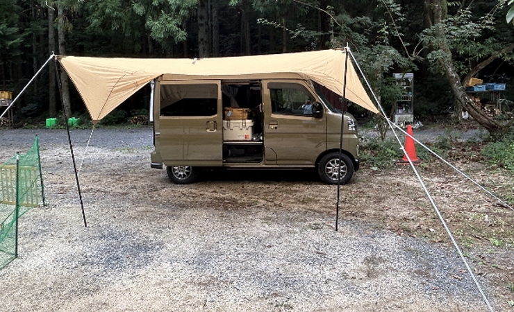 しかしキャンプ場における“車中泊キャンプ”ではテーブル、チェア、その他調理器具などはおもいっきり外に出してマイサイトを構築できます。