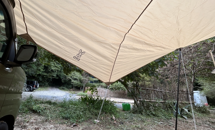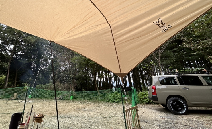 先日私の誕生日にDODの「カートゥギャザータープ」を家族からプレゼントされたので、今回初使用となります。
