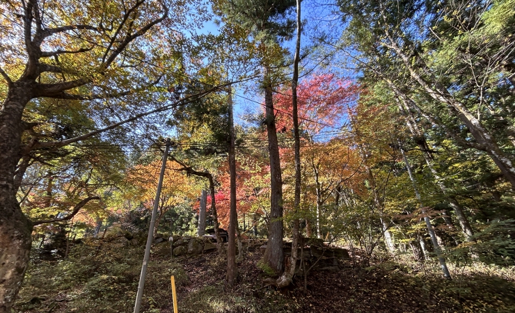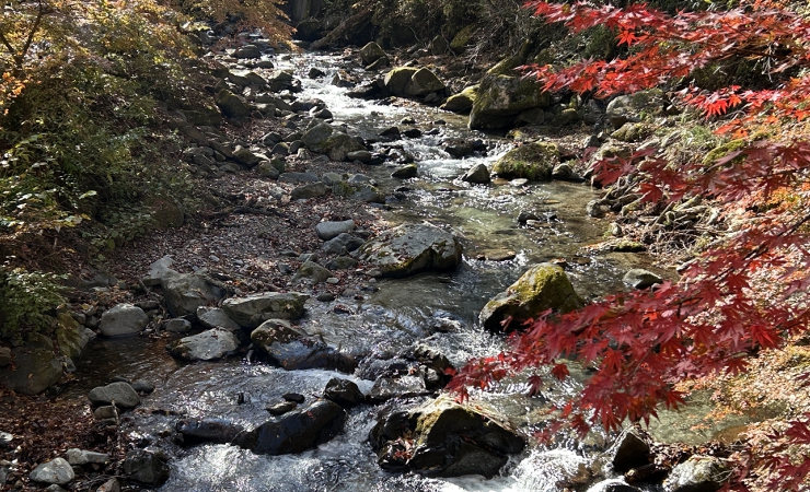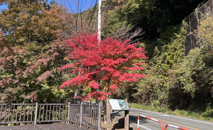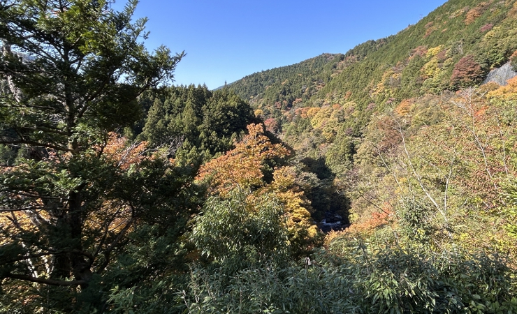 見晴台の上から道志川を見下ろすと色づきがイマイチ。