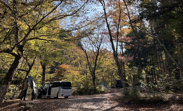 紅葉真っ盛りの道志の森キャンプ場で車中泊してきました。