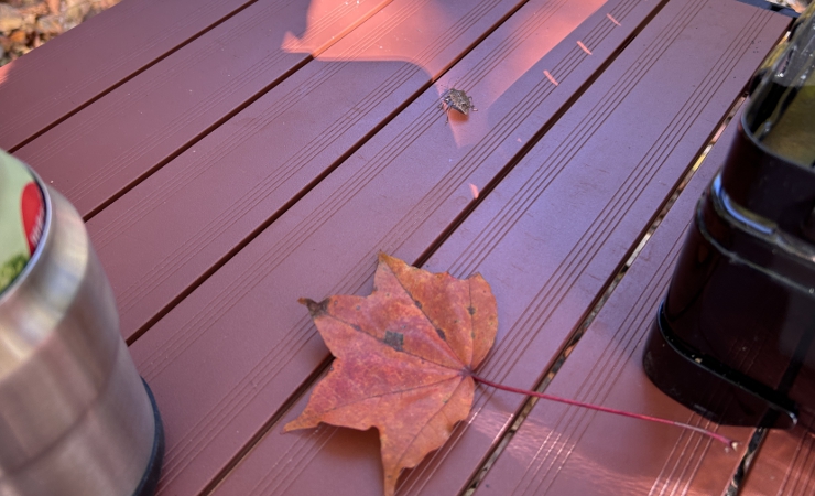 リビング設置が終わりビールをチビチビやっているとテーブルの上にゴソゴソと動くものが…。