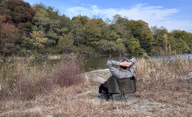 川は音も立てずに流れ、聞こえるのは鳥の声と遠くから聞こえるキャンパーの笑い声だけ。