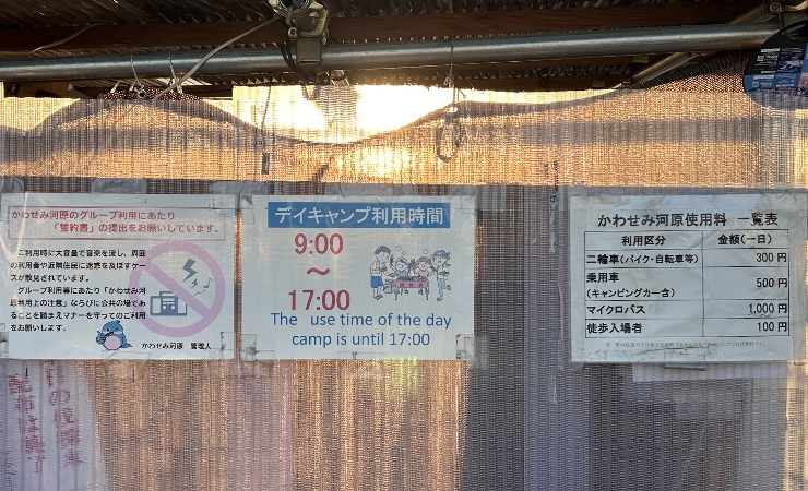 利用する場合、河原の入口にある料金所で料金を支払い中に入ります。