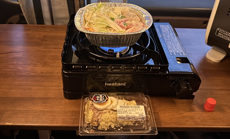 車の中で調理するので、できるだけ手間のかからないメニューであることが吉。