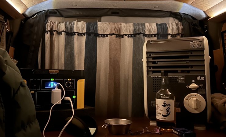 寒くなければ月明かりの下で飲るんですが、さすがにこの季節は車の中でチビチビ。