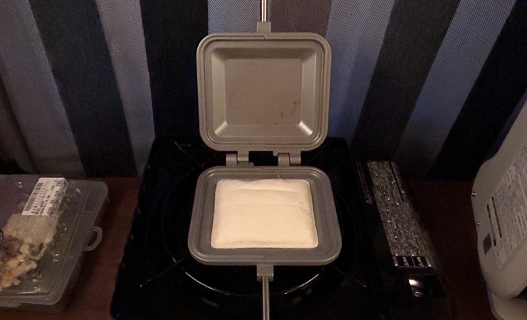 ランチパックはホットサンドメーカーで軽く焼きます。