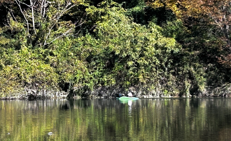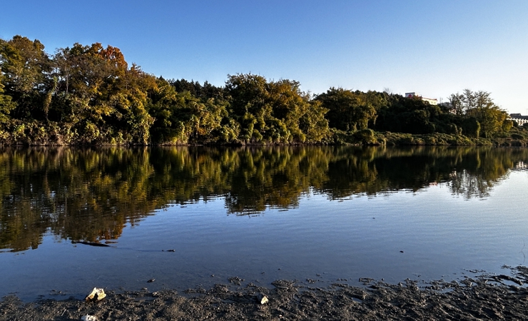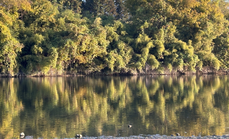 川の流れが緩やかなので、風が弱いと風景がかなりきれいに水面に映ります。