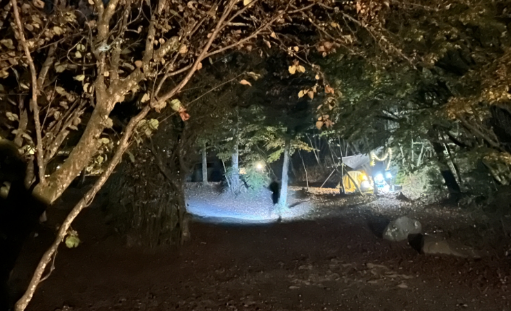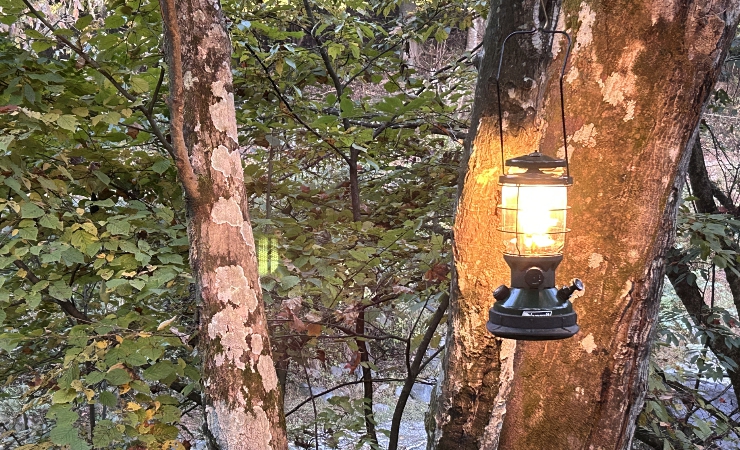 ランタンスタンドもあるのですが、眼の前の木を利用しない手はない。
