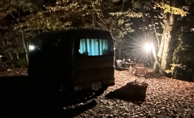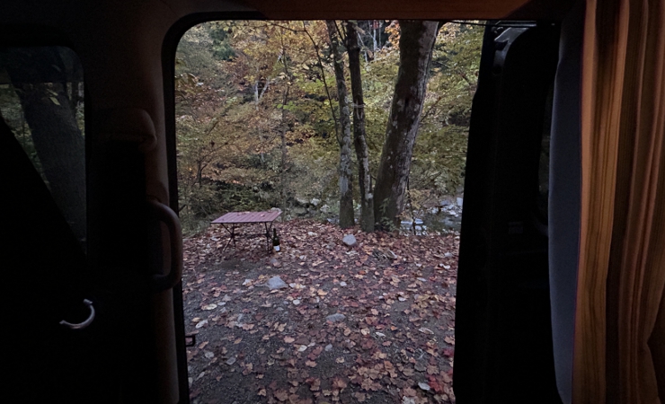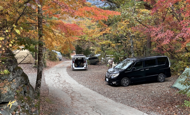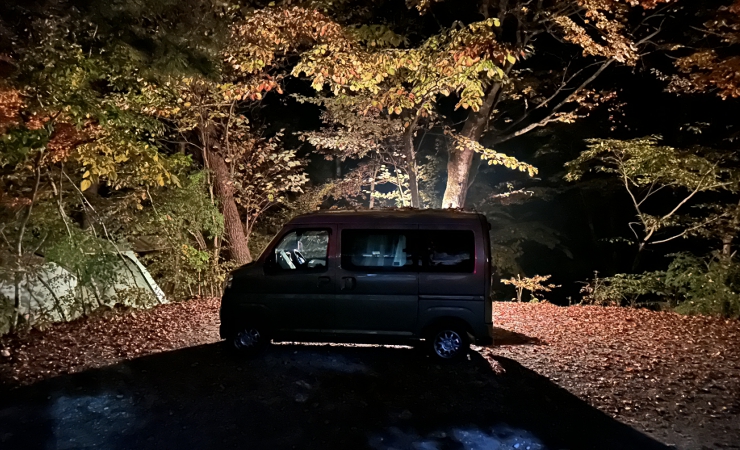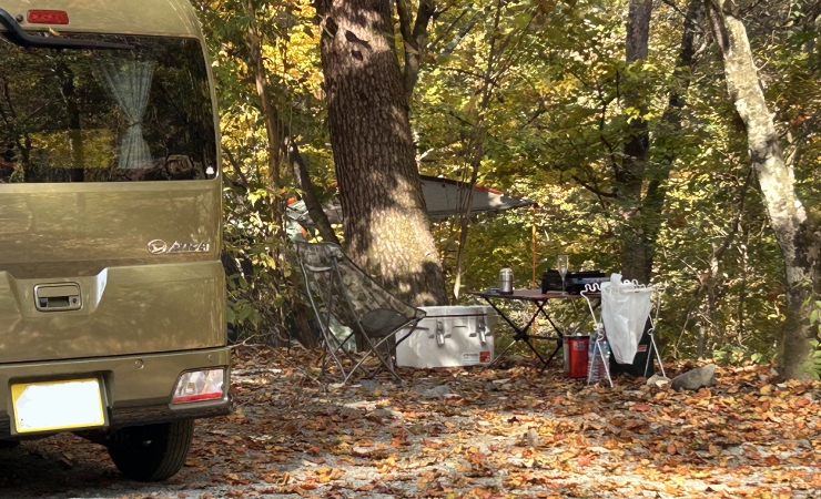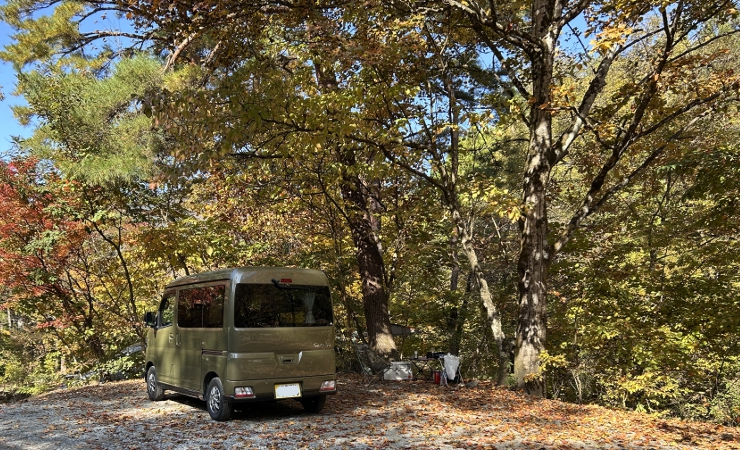 紅葉真っ盛りの道志の森キャンプ場で車中泊してきました。
