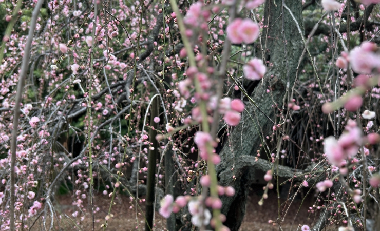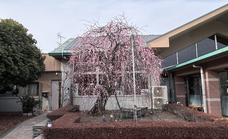 玄関の脇の枝垂れ桜?が綺麗。