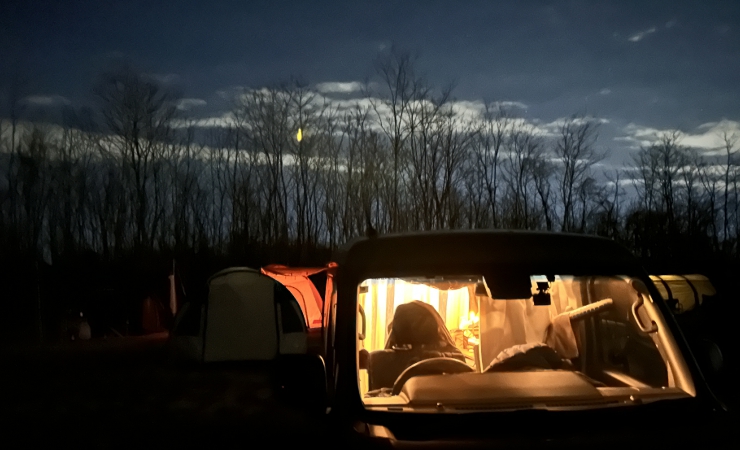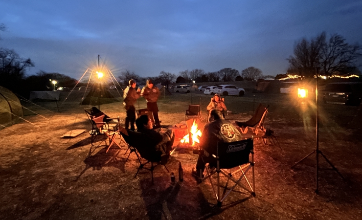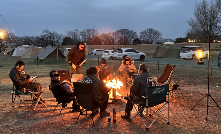 全員が入浴を済ませ、焚き火を囲んでしばしの歓談。