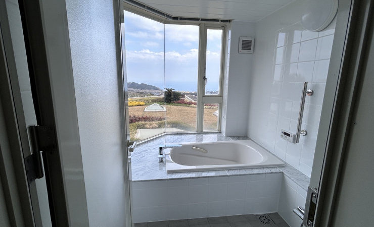 各部屋のバスからも相模湾を一望できます。