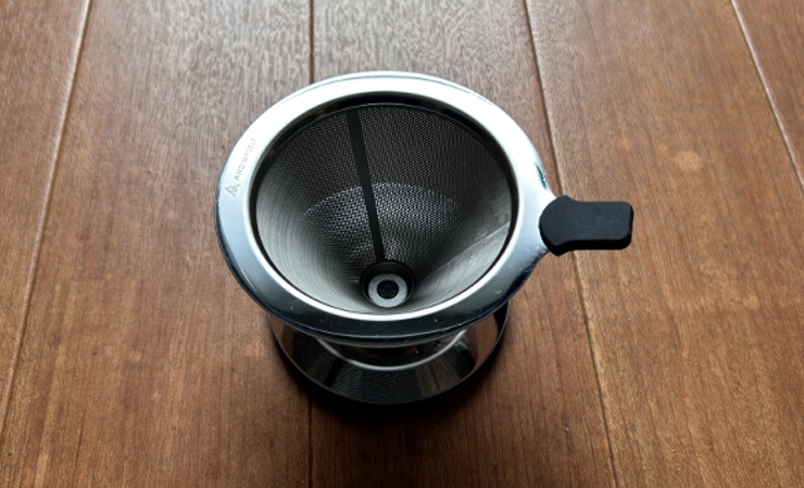 挽いた豆はステンレス製のドリッパーに入れてお湯を注ぐわけですが、このドリッパーはわずかに向こうが透けるような非常に目の細かい網と直径1mm程度の穴が一面に空いた本体との二重構造になっています。